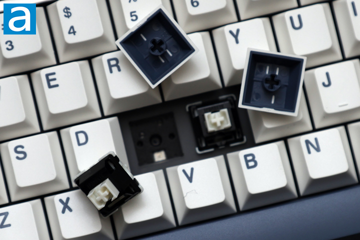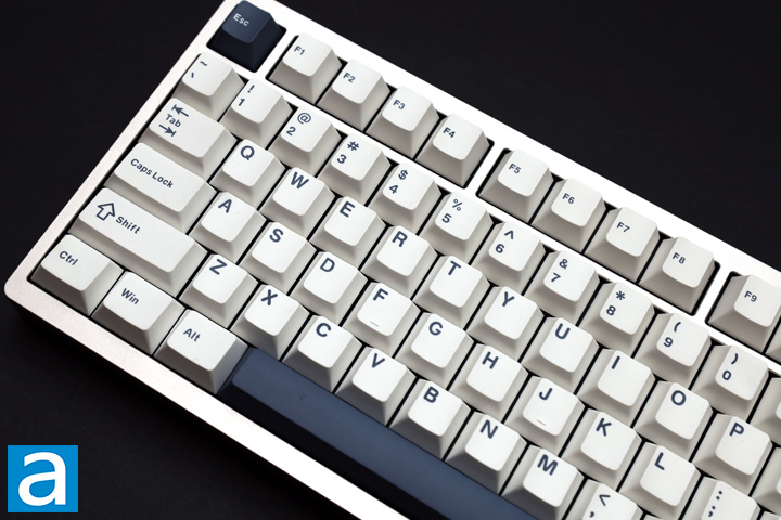 The keycaps of the Epomaker P75 are PBT or polybutylene terephthalate plastic. I really like this material because it is more durable and keeps its color better. Furthermore, these keycaps are doubleshot, which is to say there is a distinct color plastic injected into the keycap to make the contrast in color. This ensures the legends do not wear out over time like printed or laser-etched legends might. This is a costly method to put legends in keycaps, but they are long lasting too. The choice of font is legible and almost old school. The keycaps use standard MX stems and follow a Cherry profile, with a slight concavity in the middle of each key to help the users’ fingers rest comfortably.