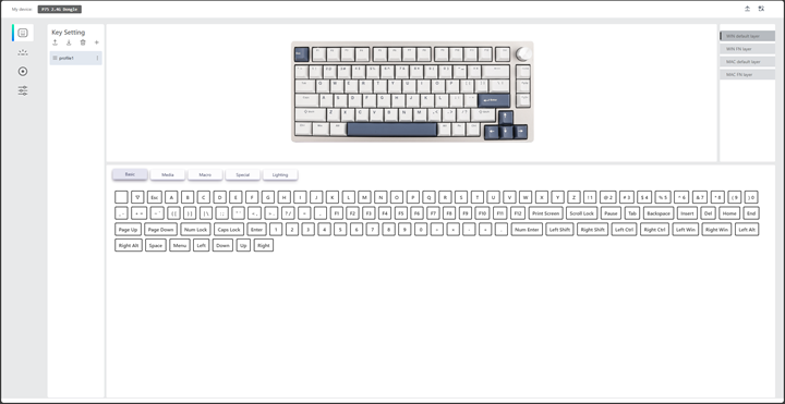 Unlike most keyboard software that requires a download, the Epomaker P75 can be controlled over a website that runs in any Chromium based browser. This means you do not need to download anything to your computer, but it does make me feel a bit uneasy when the browser asks you to access your hardware. Regardless, once access is provided, you can see all the modifications to make on the front page. These settings are split up into four sections, as seen on the left menu.