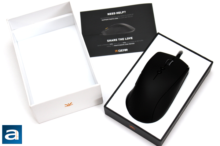 The process to open the box is as simple as peeling back the two stickers and sliding the top lid from the bottom. From here, a quick start guide should slide out, and this guide shows general use and functionality of the Fnatic Gear Clutch G1. However, the star of the show is the mouse, and this rests on a nice white foam background. This makes for a very clean unboxing experience. Obviously, Fnatic has put some time into refining the unboxing, and I think their efforts have paid off. However, the more interesting part is the mouse inside, so let us take a look at the rodent inside.