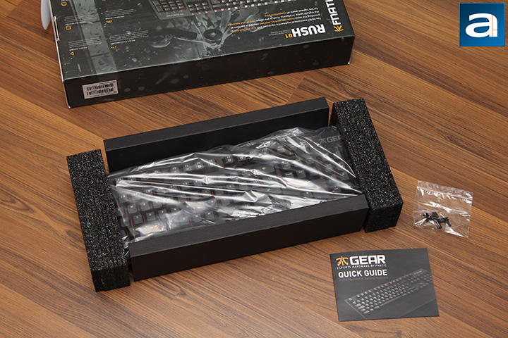 The first sentence you will see on Fnatic Gear's website is "No BS eSports equipment by Fnatic", and I would say their product packaging is no BS either. Out of the box, you will receive everything you will need, and nothing more. Securely clipped between two Styrofoam brackets is the Fnatic Gear Rush G1 keyboard itself contained in a clear plastic bag, while its detachable wrist rest is wrapped inside a separate piece of white foam. Two plastic clips used to attach the wrist rest to the keyboard are located inside a resealable plastic bag; more on this later. On the product literature side, a color manual is included. A driver CD is nowhere to be found, but this is okay. If you do not have internet, as always, please send me an email, and let me know how you came across this review, haha.