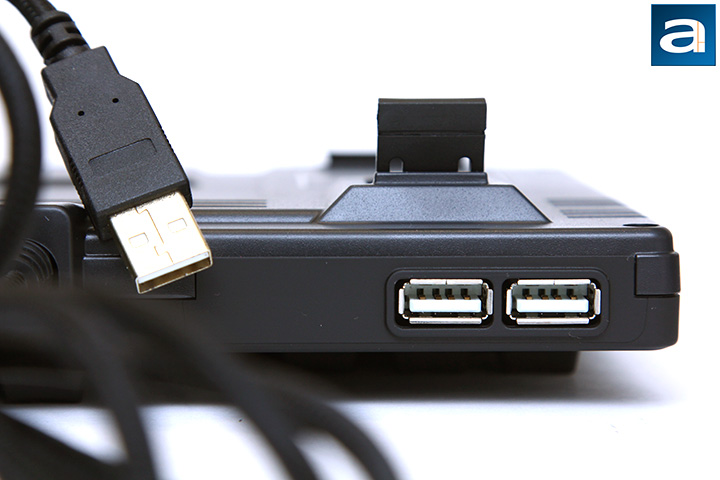 At the back of the Fnatic Gear Rush G1 is the USB cable lead out. It comes out biased to the right, and is not detachable. This nicely braided cable extends 1.8m in length to connect to your computer via a gold plated USB connector. Two USB 2.0 ports are present at the back. When we bring about the question of whether gold plated connectors are actually useful or not, let us just say if it was the actual pins, then possibly -- since gold offers better conductivity than other metals. This theoretically establishes a better connection with your computer, but on a digital signal level, we must understand it is a discrete one or zero; so if anyone tells you they can tell the difference, you can definitely defeat their theory with a double blinded test. Additionally, if you are referring to the gold part of the connector you see on the plug, I would like to point out it actually does not make any physical contact electrically with your computer. In other words, it is nice to have, and it is pretty to look at, but it is not anything significant on a practical level.