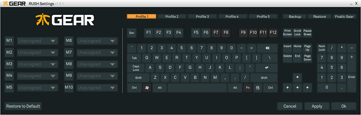 Fnatic Gear's software can be downloaded from their website directly. The latest version is 1.5.1, and it is a rather small download at 3.32MB. As I have mentioned earlier on in this review, the program is required only to customize functions. Otherwise, the RUSH Pro Silent can function independent of any software, as any user programmed functions is saved on the keyboard's onboard 128KB memory. Functionally, it is the same as Func's software designed for the KB-460 with some bug fixes.