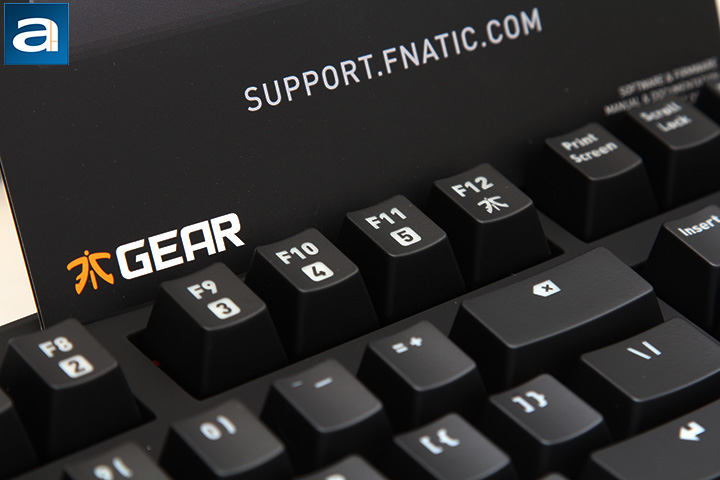 The F keys at the top converts into specialized feature keys when the Function key is depressed at the same time. Starting from F1 and ending in F12, in that order, we have Mute, Volume Up, Volume Down, Play/Pause, Skip Back, Skip Forward, Profile 1, 2, 3, 4, 5, and Fnatic Mode. All keys are designed to work out of the box, and do not require any software -- software is required only to modify settings. All settings are stored on the keyboard's onboard 128KB memory. The profile selection keys allow you to switch between macro layers, while hitting the Fnatic Mode key when a profile is active will take you out of it, and return the keyboard back to normal. Hitting the Fnatic Mode key with no profile active will return the keyboard to the last active layer. We will talk about this more in detail later. Basically, the gist of it is the RUSH Pro Silent has no dedicated macro keys, but any key other than Windows, Fn, and F7 through F12 can be customized to function as the user wishes. For example, if my "W" key is set to do something in Profile 1, deactivating Fnatic mode will return my "W" key to its default function.