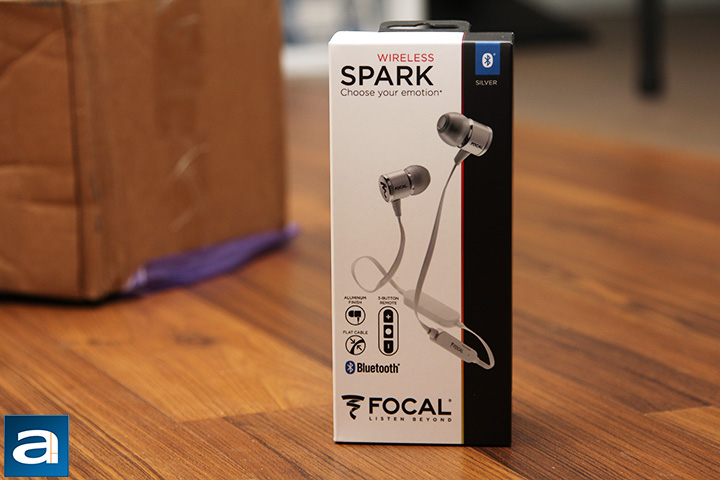 We got our Focal Spark Wireless quite a bit before it was officially announced, but they still managed to ship it to us in the final retail packaging. As you can see in our photo above, the sleek retail box comes in the form of rectangular prism, and uses a primarily black and white color scheme to give it a more serious overtone. With everything laid out sparingly, the design is clean and easy on the eyes. At the top, you will find the product name in block letters, followed by the slogan in smaller font. A Bluetooth logo and color variant information can be found at the top right corner. Our particular unit is the silver version. Occupying the majority of the space in the middle is a photo of the earphones at various angles. Meanwhile, at the bottom above Focal's logo is an arrangement of icons show off its aluminum finish, flat cable, three button remote, and Bluetooth connection. Miscellaneous information such as the Focal Spark Wireless' specifications and remote usage instructions can be found on the remaining sides of the box.