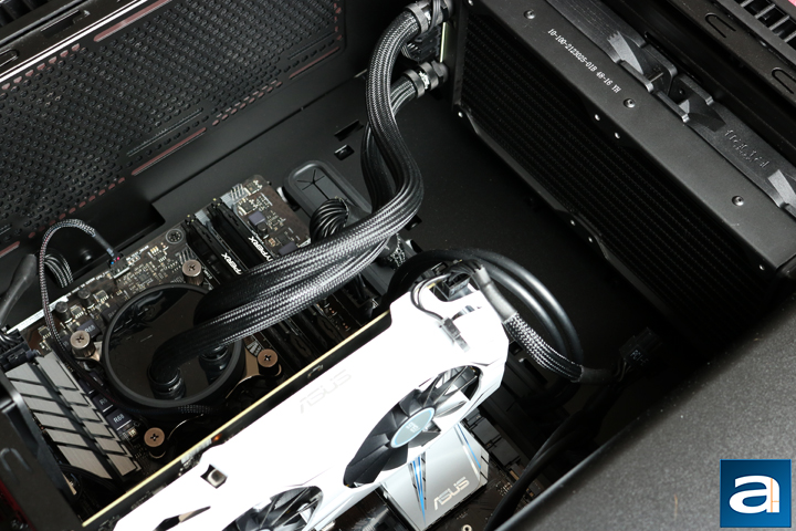 For anyone not using over-the-ear headphones to block out everything except your game or music, silence is pretty important to the enjoyment of using your computer. Using a scale between 0 and 10, where 0 is silent and 10 is a jet taking off, I would rate the Fractal Design Celsius S24 at 2.0/10 at idle, while under load, the sound comes in at 3.5/10. The RPM of the fans really ramp up to keep the system cool, but they were mostly silent during idle. Noise from the pump was mostly inaudible due to some integrated sound dampening. Depending on your sensitivity to noise, the Fractal Design Celsius S24 will be adding very little extra noise while keeping your PC operating in safe temperatures. Perhaps if you are very picky with noise emissions, you could change the RPM range of the pump or the fans, but that will affect cooling performance. The Fractal Design Celsius S24 also has you covered in changing the fan and pump speeds. On top of the pump to the right is a notch indicating if the fan mode is in either Auto or PWM. Twisting the plastic band surrounding the water block allows one to switch between the two modes. According to Fractal Design, in Auto mode, the system will intelligently optimize the pump and fan speeds for a balance between performance and silence. On the other hand, PWM allows the system to be controlled by your motherboard from software.