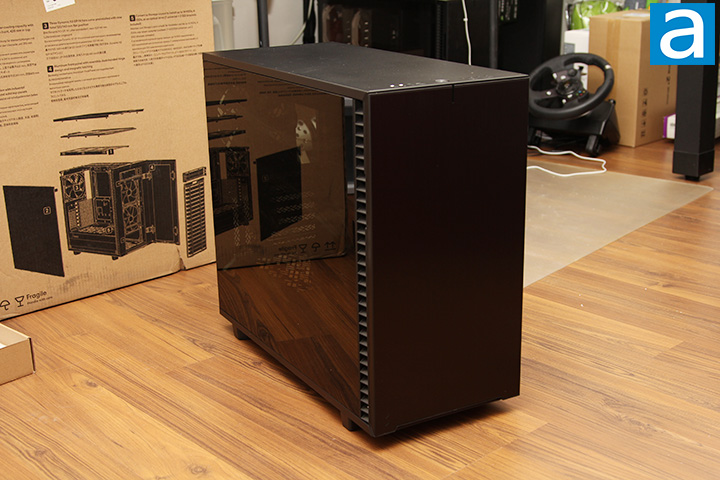 Anyone who has owned a case from Fractal Design's Define series will have a very good idea of what to expect. Our particular unit is the Dark Tempered Glass version; other variants include Light Tempered Glass, Clear Tempered Glass, and solid side panel. The Dark Tempered Glass version is only available in black. The Light Tempered Glass version can be found in black or grey, while the Clear Tempered Glass version is available in white/black or white. You can get them in any color you want if you choose the solid side panel. After a decade and many generations of what we call the "fridge inspired" design here at APH Networks, the Define 7 stays true to its predecessors. For those who swear by exemplary clean looks combined with an intrinsic attention to detail and emphasis on silence, this is your mid-tower chassis.