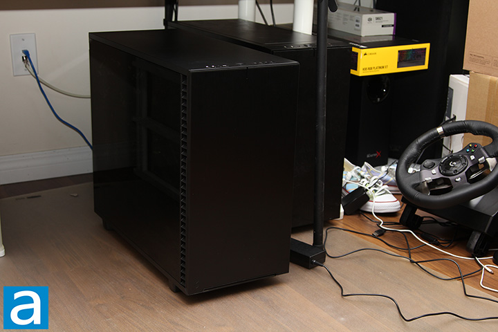 After plugging in everything, our system configured inside the Fractal Design Define 7 Dark Tempered Glass was ready to roll. I hit the large power button at the top, and my computer came to life. You can see the Fractal Design Define R6 Blackout TG right behind our Define 7 Dark Tempered Glass. It is too bad the Fractal Design Define 7 Dark Tempered Glass does not come with a built-in RGB lighting system.