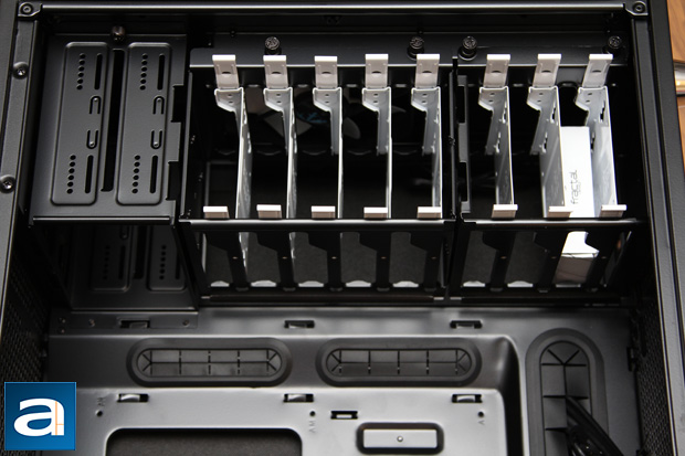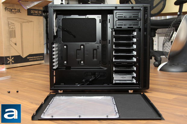 The Fractal Design Define R5 is composed of three independent racks for all your drives, which can be removed independent of each other, depending on your needs. For example, if you want to install an extra long video card, you can remove the center rack. If you want to add a fan at the top or bottom, you can remove the optical drive rack and lower HDD rack, respectively. If you just want better airflow, you can take them all out, and only use the two 2.5" SSD bays behind the motherboard tray. How is that for some flexibility?