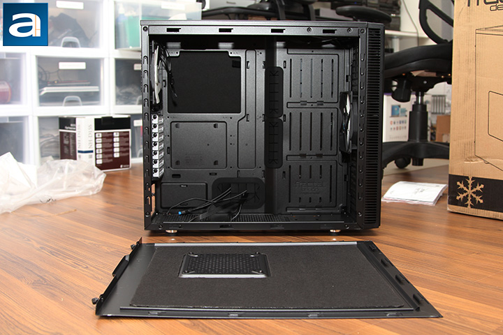 One bottom 120mm or 140mm fan can be installed into the Define S. Should you need more, you can remove the bottom 3.5" drive rack to accommodate one more 120mm or 140mm fan. With no bottom fans installed, Fractal Design claims the Define S can take power supplies up to 300mm long. Of course, this is just a trivial fact, because I do not believe something of such a size exists in the world, haha.