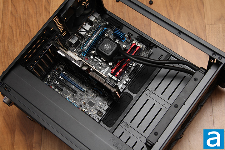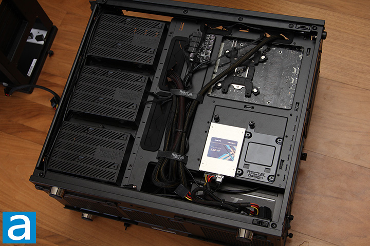 Thanks to the cable management section behind the motherboard tray, organizing the modular cables from my Seasonic power supply was a breeze. Pushing all the case I/O cables through the large bottom opening adjacent to the motherboard on the PSU shroud delivered excellent accessibility to anything that requires a connection to my Intel Desktop Board DZ77GA-70K. The large motherboard tray cutout also made the installation of my SilverStone Tundra TD02-LITE's water block as smooth as possible.
