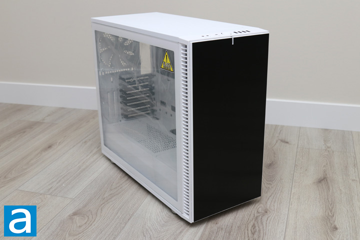 Our original Fractal Design Define S borrowed a lot of similar elements from the Define R5. So it should come to no surprise that the Define S2 borrows a lot of similar elements from the newer Define R6. In fact, if you were to glance between the two, you will probably not realize there is much of a difference, at least during first impressions. As we mentioned, there are other colors for the Define S2, but we received the white one. In addition, all of the Define S2 versions come with tempered glass, which is a bit surprising considering the S-lineup used to have a heavy focus on silence. In terms of aesthetics, our white version is more of a Star Wars' Stormtrooper palette, especially with the large black front panel on the white body. The typical Fractal Design "fridge" is in full effect, which makes for a clean exterior. It may not be a minimalist one, but everything is tidy and in an expected place. Overall, I really like the way it looks as it sticks to a known formula from Fractal Design. In terms of dimensions, the Define S2 measures in at 543mm in depth, 233mm in width, and 465mm in height, which has the exact same dimensions as the aforementioned Define R6. In terms of weighting, the Fractal Design Define S2 tips the scales at 11.6kg, which is about 25.6lbs.