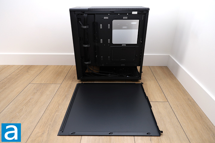 There is only one thermal zone inside the Fractal Design Epoch, since the shroud separating the main chamber and the power supply chamber is almost fully ventilated. Cables can be routed through two openings on the shroud adjacent to your power supply. Other cables can go through the two large openings on the right side of the motherboard tray. If the cables do not fit through the standard openings, you can always use the large space where the shroud does not cover. Rubber grommets are present on the two motherboard tray openings to keep everything looking neat and tidy. For unused cables, it can stay underneath the shroud.