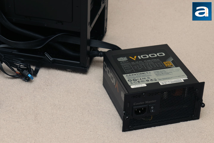As with all the installations I do, the first thing on my list was to take the power supply and slot it into place. In this build, I used the Cooler Master V1000 1000W. A maximum length of 175mm is stated by Fractal Design for the power supply, though I would recommend even less, especially if you need to move the drive cage to accommodate front cooling options. The other option would be to remove the drive cage entirely, which is an option if you do not have any large 3.5" drives. The V1000 was a bit tight, though there was still ample space to store my extra cables in the bottom chamber. The next thing I did was route the necessary power cables. The rubber grommets do an excellent job in only allowing cables through while blocking the rest of the opening for a cleaner look. Micro ATX layouts are generally pretty standardized across manufacturers, so the routing options provided here are quite adequate.