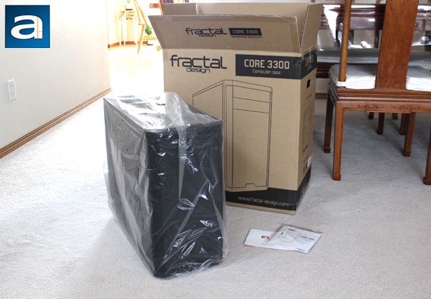 Grabbing the nearest pair of scissors, I cut through the top layer of packing tape, and opened up the case. The Fractal Design Core 3300 was wrapped in a large transparent plastic bag, and wedged between two large Styrofoam fittings. The large brackets are good at absorbing shocks, experienced when shipping or moving the case in the retail box. The plastic bag is also adequate at ensuring there will be less surface scratches or marks. Both of these protective measures were good to see, showing Fractal Design is concerned about protecting their products. The Fractal Design Core 3300 comes exclusively in black, which is expected of a case in this price range. Along with the case, there is a user manual, as well as an advertisement for Func computer peripherals. On first impression, I can tell the Core 3300 is actually quite a bit different from the Fractal Design cases we have seen from the past, but simplicity is still king here. I will cover more of this in detail later.