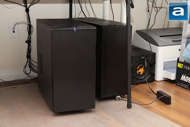 After plugging in everything, our system configured inside the Fractal Design Define R4 is ready to roll. I hit the large power button at the top, and my computer came to life. Your finished system should resemble what I have above, since there is nothing much you can change here anyway, haha. Notably missing is the HDD LED. Can you tell which one is the Define R4, and which one is the Define R3?