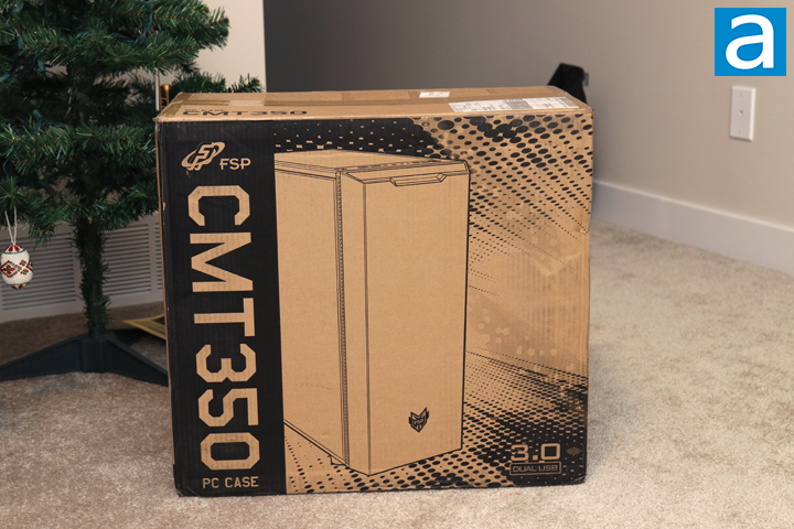 Today's review unit of the FSP CMT350 arrived from FSP's offices in Chino, California. Traveling with FedEx and their Ground service, this box arrived in decent condition with no real dents or bruises to be concerned about. As this is a pretty large product, the shipping container also doubles as the retail container that you would normally see in a store. Like the CMT340 we saw from FSP earlier this year, this CMT350 box design is pretty similar with the company and product names down the left side of the front panel. A black outline of the case can be found in the middle. Interestingly enough, the only feature listed on this panel is the fact this has two USB 3.0 ports. Otherwise, the rest of this box is slightly stylized but kept much cleaner than the CMT340 retail container. The sides have a list of features and specifications for this computer chassis.