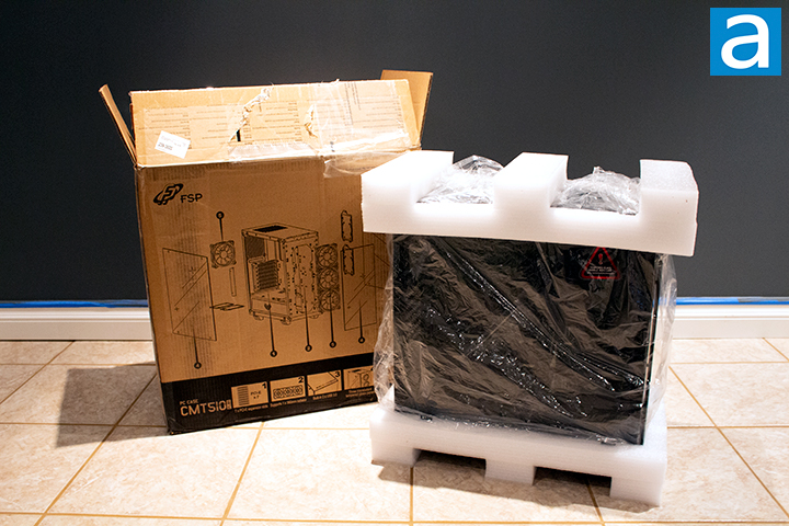The FSP CMT510 Plus arrived via FedEx Ground in its retail box like many other computer cases, from Chino, California. The box was slightly torn on the top and had a couple other scuffs and dents. Although there was a little tear, which did get me a little worried, the box arrived in one piece. FedEx had successfully done its job to ensure the safety of the contents. I grabbed a pair of scissors and cut open the box to reveal what I really wanted to see.