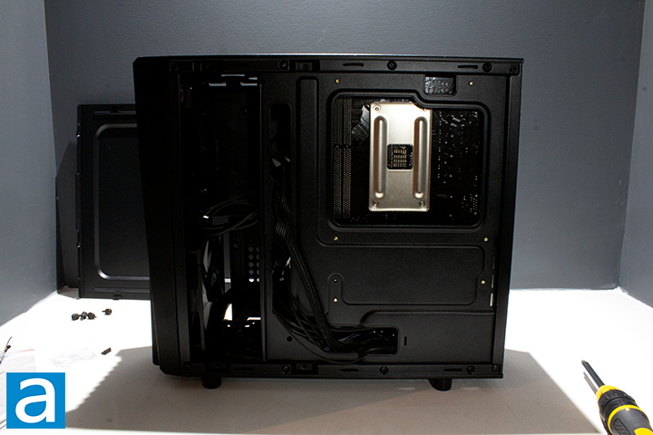 I found the installation process for the FSP CST110 to be a little harder compared to other cases, given this case is smaller. As someone who has built several computers now, the process was straightforward, but did have its own unique twist to some parts like the drive mounting solution. FSP included all the necessary supplies inside a small bag zip-tied to the back of the case. This packaging is fairly standard for most retail cases. I took out any necessary screws and got to work. Having a single fan allowed me to route the one cable to its Molex connection on my PSU incredibly easily, as it is a straight path with no shroud in the way. The front I/O was simple enough to route to the motherboard and is long enough to be easily plugged into the motherboard. However. some may consider it too long, as it is harder to manage in this regard. The drive setup was more interesting than what I was used to, but interesting in a good way. I unscrewed four screws and pulled out the bar to install a drive onto it, then I just placed the bar back in place and screwed it back in. The whole process was super linear, except for the different approach to the drive storage and my previously stated issue with the CPU cable.