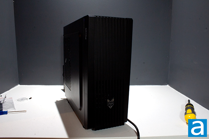 In my opinion, the FSP CST110 looks decent. I think FSP pulled off a good look despite not have a glass side panel. The basic design of the side panels is quickly made up for by the front panel that makes this case edgier in a literal sense. Personally, I am not a fan of the fan layout. In this case, the most optimal spot to leave cables would be to leave them directly beside the PSU itself, but this is also in the way of the front intake fan. I think a better layout would be to raise the fan to a higher level and have a small drive bay at the bottom of the case. According to the standard APH Networks sound scale, where 0 is silence and 10 is loud, the CST110 is a very manageable 2.5/10 under full load, which is louder than I thought it would be when considering it only has one fan, but is still good for everyday use.