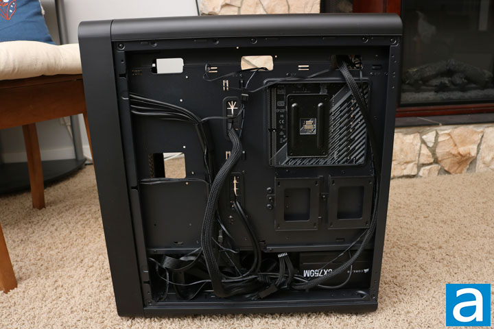 There is an ample amount of room between the motherboard tray and right side panel at 20mm. Furthermore, a good amount of Velcro ties is included to keep the cables together as needed.