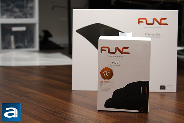 Our review unit of the Func MS-3 Revision 2 (Stylized as Func MS-3²) laser mouse came in its retail packaging. The company shipped along an F-Series 10 L mousepad to test the MS-3 with, just to ensure it tracks and glides across a favorable surface. It was then I realized how old the SteelSeries SX on my desk is, even though I got a stack of high end gaming pads -- practically unused -- kicking around in my closet. Actually, I still have the Func sUrface 1030 Archetype MBA Custom in use with my spare computer. Anyway, while we are not going to write a separate review for the F-Series 10 L, we will spend a little bit of time talking about the combination in this review today.