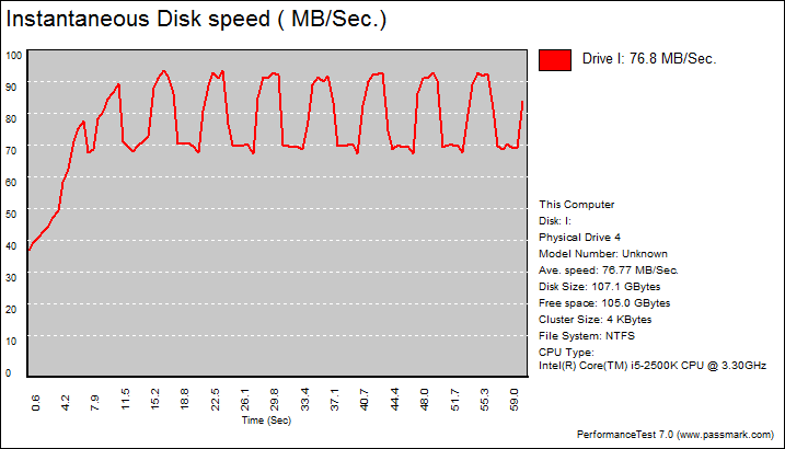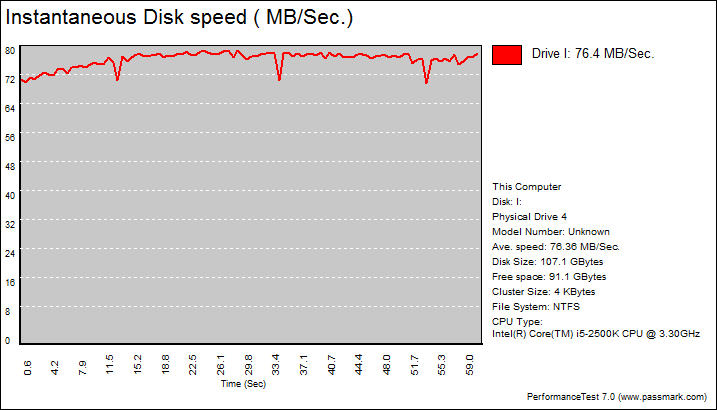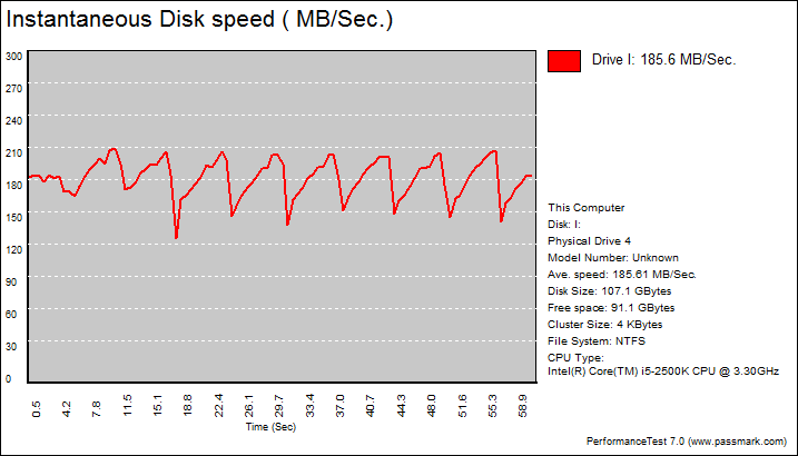 This Advanced Disk Test, which is part of PerformanceTest, measures the data transfer speed when reading or writing data to one or more disks. The speed that data can be transferred between memory and a hard disk drive is one of a system's most important performance aspects. There are quite a few factors which have a bearing on this speed and the Advanced Disk Drive Test allows the user to vary most of these factors and compare the results.