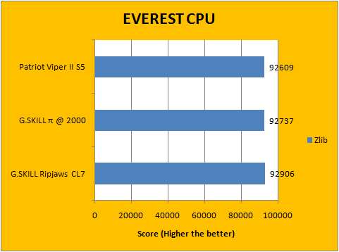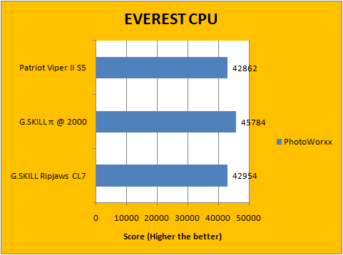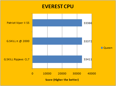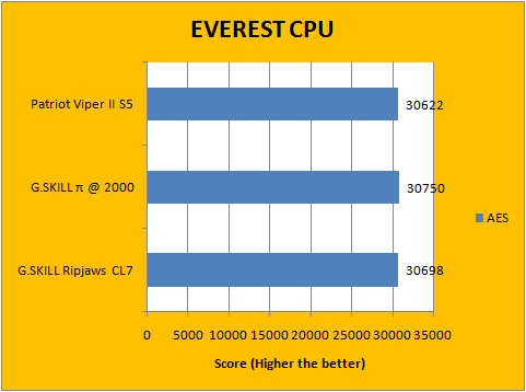 As always, our first set of benchmark results presented on the table are data obtained using EVEREST CPU tests. All of the numbers were extremely close to each other, as shown in our graphs above. It favors the Pi series the most, which had the highest memory bandwidth; followed by our Ripjaws -- which operates as the same frequency as the Patriot modules -- except with lower latencies. Our data labeled charts should speak for themselves.