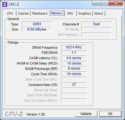 Ever since Intel's second generation Core processors hit the market, it really made a reviewer's job a lot easier. For the lazy bunch of us, overclocking memory used to involve fine tuning of the front side bus or base clock of the processor to precisely measure the maximum attainable RAM speed. Since Sandy Bridge's base clock is practically locked down, and for practical purposes, capped voltage at 1.65V, the only practical way of testing this is to see if the tested modules can notch up an entire step. Although I have read articles written by professional reviewers being able to send the G.SKILL Ripjaws-X F3-14900CL9D-8GBXL to blistering DDR3-2133 speeds with minor adjustments to the latencies, I was not able to get there with my particular set even with a voltage bump from stock 1.5V to 1.65V. This is entirely understandable, because if the Ripjaws-X DDR3-1866 are indeed capable of operating at DDR3-2133, G.SKILL could have easily sold it as the F3-17000CL9D-8GBXLD kit instead -- they have exactly the same hardware under the hood as discussed on Page 3 of this review. That said, I was able to tighten up the latencies slightly from 9-10-9-27 to 9-10-9-24. It is probably not going to make any empirical difference in real life usage (Or even benchmarking, for the matter) -- so personally, I would just leave it at stock 9-10-9-28 1.5V.