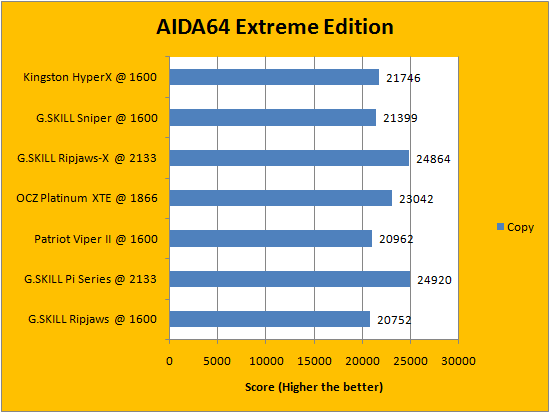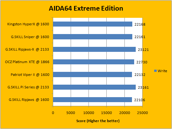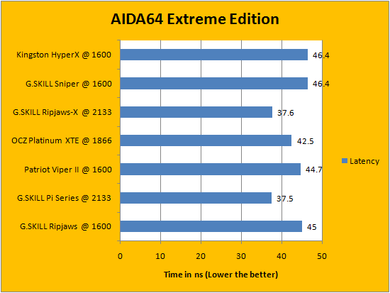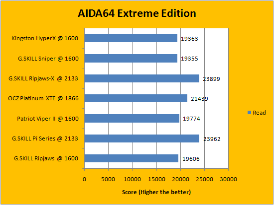 AIDA64's synthetic memory tests is the one next up to produce results for our review today. In pretty much all the benchmarks, we can see that higher memory bandwidth RAM kits are generally favored -- whether it be the Copy, Write, or Read results. However, other than the latencies test itself, memory kits with different timings generally do not play a big role on Sandy Bridge processors. In the end, competition is neck to neck; we can see memory kits with the same bandwidth being just a few points next to each other.