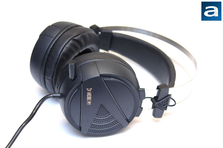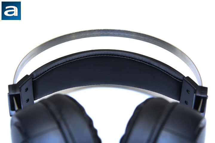 Comparing the headband arm with the oversized earcups, the headband may look a little bit smaller, but it is just how it looks. In fact, the headband arm is made out of solid steel. The stiffness of the headband arm is strong enough to firmly clip the headset to your head. Underneath the metal headband arm, there is a tension band with soft memory foam wrapped by PU leather. In the above picture, we can see the tension band is attached to the headband arm through a clip with the GAMDIAS' company logo on it. The tension band can hold the headset in a proper position on the user's head. As I have mentioned in the introduction, there is no mechanical mechanism on the headband arm that is adjustable. There is not even a flange between the headband arm and the earcups. The fitting is solely dependent on the tension band. Therefore, if you have a normal sized head like I do, this headset will be comfortable and easy to wear. However, if you expecting more adjustable features, then this product may let you down.