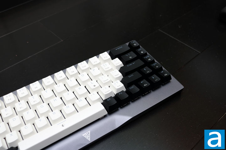 By far the most striking part of the GAMDIAS Hermes M4 Hybrid is the black and white keycaps, and it looks great. It is nice to see a bit of a different look available for keyboards, since they are more often than not just one solid color. There are quite a few extra icons printed on the keycaps, this is in part due to the size of the Hermes M4 Hybrid. It is a 65% keyboard, meaning it has no F row of keys. These are found as the alternate function on the number row of keys. Some of the keys found around the outer edges also have extra functions to control the volume or RGB LED lighting.