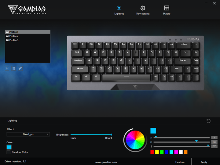 The Hermes M4 Hybrid software is fairly basic. RGB lighting modes can be changed, and the different profiles can be programmed. Each individual key can be programmed to different functions, which makes the keyboard easy to use in different situations. Macros can also be recorded in the software. The entire experience is pretty simplistic and generally offers what I need. However, it would be nice for GAMDIAS to make a single application to cover all of their products.