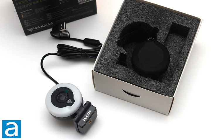 Out of the box, we have a smaller white cardboard box with a black foam insert to protect everything inside. The GAMDIAS IRIS M1 can be found slotted in a large insert area with its cable wrapped by a cable tie. A rubber privacy cover is also included for a physical reassurance that the device is not capturing anything unintentionally. I do appreciate this physical cover included with the IRIS M1. A small quick start manual is also included to help users get set up with their webcam.