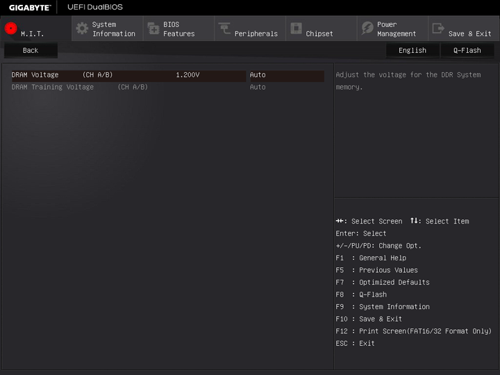 DRAM Training Voltage 1.000V to 2.000V @ 0.02V increments