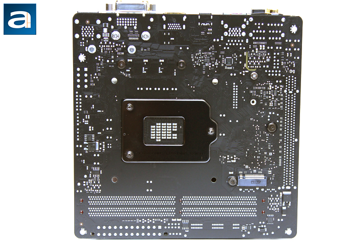 At the back of the motherboard, we have a clean and simple layout. This results in an easy to add aftermarket CPU cooling solution, which will almost likely be the case, as Skylake K-processors do not come with any stock cooling. An Intel backplate made by Foxconn is found here, but practically all LGA1151 third party coolers should not have any issues with working while the backplate is in place. Right under the backplate is a PCIe Gen3 x4 M.2 port for compatible SSDs. As usual, the RAM sockets and expansion card slots use through-hole connectors. SMT (Surface-mount technology) is not capable of withstanding higher mechanical stress required for this purpose, and therefore not used.