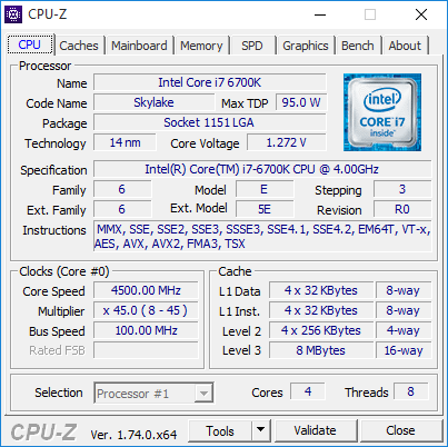 Before Sandy Bridge and Ivy Bridge, overclocking your CPU involved changing half a dozen settings to try to obtain the highest clock speed. This was because there were so many different ways to obtain your maximum frequency, things were a bit complicated even if you are an experienced computer enthusiast. With the latest Skylake processors, you can play around with the base clock like Haswell, but since I got an Intel Core i7-6700K, I simply tuned with the unlocked multiplier. Using a CPU purchased anonymously at a local retail store, I was able to attain 4.5GHz at reasonable voltages on the GA-Z170N-WIFI; which was pretty good. To achieve this, I changed the CPU Loadline Calibration to High, and set every other voltage setting to "Normal". I gave the Vcore an offset of +0.035V to target 1.30V under load. This 500MHz change from stock translates to a 12.5% overclock.