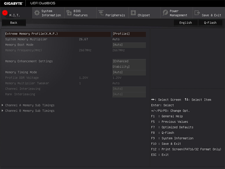 Overall, the usage experience of Gigabyte's UEFI BIOS is excellent. Smart Tweak Mode is where it is at, but Classic Mode as demonstrated here is present for those who like old school. The control interface is very smooth, and screen transitions are quite flawless. I really do not have any complaints.