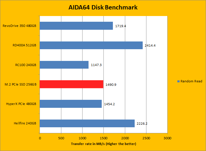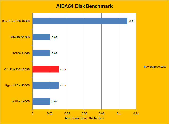 Since our SSD review benchmark results are presented in alphabetical order, first up on the list are results from one of our favorite benchmarking programs, AIDA64 Engineer. Just to note, AIDA64 Engineer is a full synthetic benchmark. This means it is not a representation of real life performance, such as how fast applications start or how fast it takes to start up your operating system. However, it does provide valuable insight into performance between different drives and different controllers. As you can see in our graphs above, the Gigabyte M.2 PCIe SSD 256GB comes out swinging with good performance. Compared to the other five drives this Gigabyte went up against, it always ended up in fourth place. This is not a terrible result, especially considering how much cheaper it is compared to all of these other drives. Compared to our recently reviewed Toshiba RC100 256GB, the M.2 PCIe SSD generally compared positively with favorable results in practically all of the benchmark numbers here. The tested random access time was 0.03ms, which was tied for the fourth among these drives. The rest of the comparison results against all the other drives can be seen in our graphs above.
