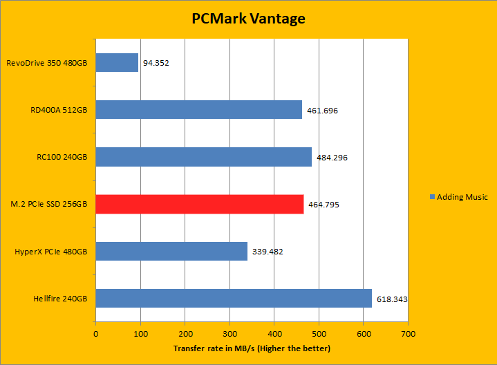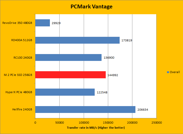 PCMark Vantage aims to shed a little more insight into real life performance of your computer hardware by semi-synthetic means -- and all insight is good, right? The great thing about standardized tests is anyone can repeat them and get very similar results, given identical hardware. I am not going to narrate the stuff above in detail, because the graphs can tell you enough. PCMark Vantage uses some pretty simple simulations, so it is pretty optimized for drives with relatively fast linear read. Just to give you a bit of insight if you are too lazy to go through all nine comparisons, the Gigabyte M.2 PCIe SSD 256GB ranked approximately third or fourth in almost all of the test. All of these numbers were pretty competitive with the other drives, especially when you put price in perspective. This again leads back to the fact good linear read speeds will be more dominant in these tests.