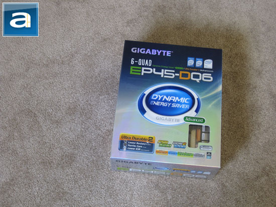 Our review unit of the Gigabyte EP45-DQ6 came in a relatively small brown corrugated cardboard box using FedEx International Economy. When FedEx showed up at my door last month with this package, I was like, "What's in there?" -- it didn't take long before I opened the box to see a brand new mobo... er... motherboard, inside. Thanks to the excellent use of packing material inside, everything arrived in mint condition.