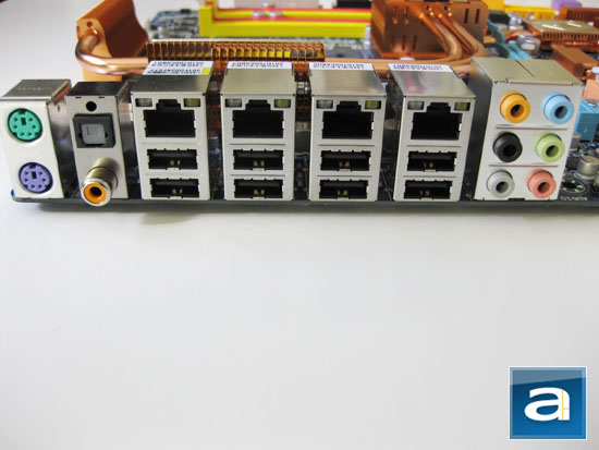 When I first saw the back of the Gigabyte EP45-DQ6, I was like, "...". FOUR GIGABIT ETHERNET PORTS? I thought two was more than enough for typical home network designs -- even if someone was to design a public and private network at home. Point being, you could do a load of stuff with something like this, although most users won't utilize all four Gigabit Ethernet ports. It's... definitely nice to have, I guess, haha.