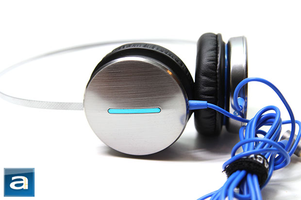 The Gigabyte Fly headphones are available in only one design, as shown in our photo above. The company markets it as having "DJ headset driver units" with a “rhombus pattern headband design"; an interesting description to be used. The "DJ headset driver units" refers to a pair of relatively small cans with 40mm drivers (Not quite DJ style in my opinion, but I digress) created with a brushed metal finish on the outside, and leather cushioning on the inside. The brushed metal finish is pretty sleek looking in conjunction with the teal blue strip in the middle. At first glance, it is easy to be fooled into thinking it is metal. In reality, it is actually plastic. For its cordless weight of only 79g, I am not complaining.