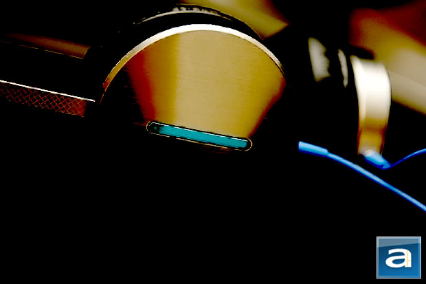 Following up on the inside of the cups, Gigabyte designed the Fly with leather cushioning to enhance comfort, and reduce environmental noise by creating a comfortable seal around your ears. The quality of the leather cushioning is actually pretty decent. It feels soft, and it does not exhibit any cheap foam lining feel found on many lower grade products. Furthermore, the headband's "rhombus pattern design", unlike the cans' exterior, is actually metal. Personally, I would refer to it as a diamond mesh pattern instead, as I don't see any rhombuses. Again, I digress. Mechanically, the headband is thin and light, yet structurally sound. The cans can be slid along the headband for about 3cm on both sides to accommodate people with different head sizes.