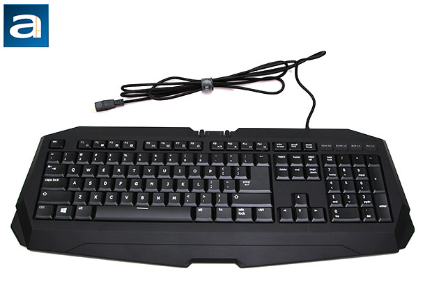 At first glance, you will think the Gigabyte Force K7 looks like your run of the mill keyboard, and I will forgive you for that. To be honest, I like "down to earth" keyboards more than those with a billion features stuck to it, but that is just me. Of course, there are elements that make the Force K7 unique in its own way, but it really does not hurt to spend a little bit of time taking a more general approach when examining this keyboard before we dig down to the details. As you can see in our photo above, Gigabyte has taken a fairly traditional layout when it comes to laying out the Force K7; the only addition they have made is the dynamic volume and backlight control wheels at the top. You will find no macro keys, or even dedicated media control keys, for that matter. That said, sticking to its 'stealth gaming keyboard' idea boldly printed across the front of the retail box, the Force K7, in conjunction with its integrated non-detachable wrist rest, is made with a series of angled, straight leading edges. Personally, I found that pretty cool, whether the keyboard is invisible to radar detection or not. I mean, it probably already has a pretty low radar signature, but either way, not a whole lot of people are planning to take this to Iraq any time soon.