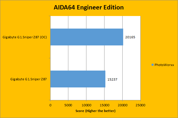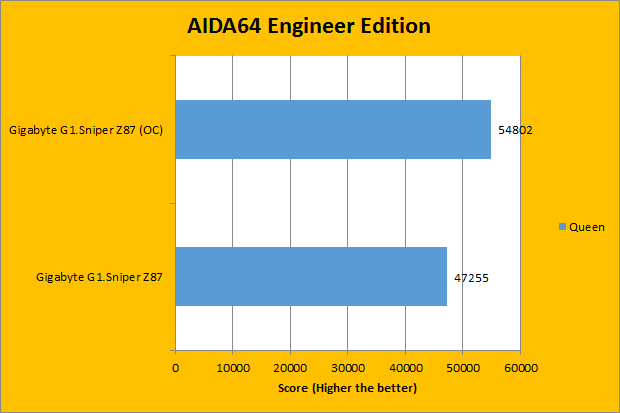 As usual at APH Networks, we push our hardware to the limits to produce results and have graphed it for your convenience. As aforementioned, most motherboard models perform almost identically, we chose to overclock the Intel Core i7-4770K CPU to test the G1.Sniper Z87's potential performance in overclocking. From the results shown on the graphs above, you can see quite a variance. However, if I were to make an educated guess, results between most boards would vary slightly according to stock and overclock settings, respectively. For your reference respective to each of the results above, the percentage increase from stock to overclocked is approximately 16%, 32%, 13%, and 16%. This is probably due to how Turbo Boost is allocated at stock settings. Generally, these differences are pretty decent, given the performance from overclocking is almost free. Like the saying goes, "Give it 110%," and you got yourself a good start. Stepping back and taking a look at the big picture, 10% performance increase is already pretty good, but we have gone past that in every single result. It is like giving me more than 10% pay increase every year, which I will gladly accept, haha.