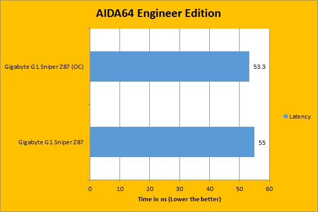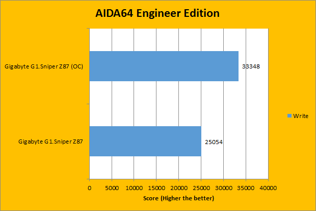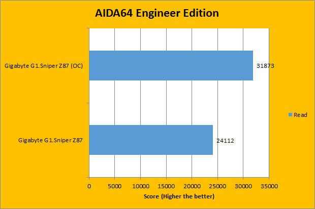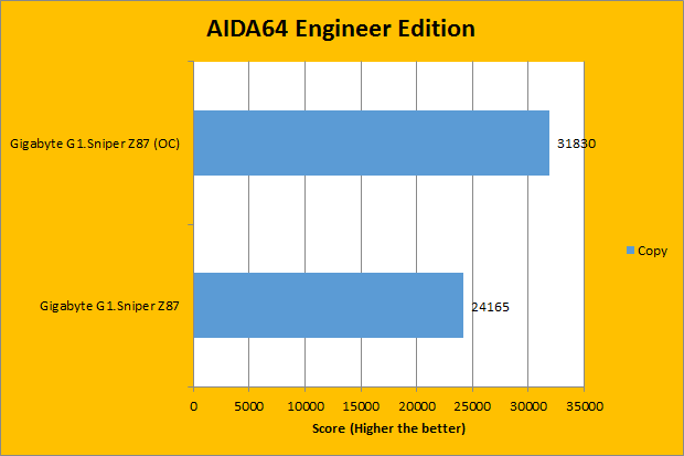 It should not be too much of a surprise by now that there is great variance in results between stock and overclocked settings, seeing the overclocking potential afforded by the Intel Core i7-4770K in conjunction with the Gigabyte G1.Sniper Z87. As expected, overclocked settings will produce higher scores compared to stock settings on the same board with the same configuration of hardware. Performance increases here are approximately 32%, 33%, 31%, and 3.1%, respectively. Here, we see are more consistent performance increase between memory read, write, and copy, which is what I have expected. Up next are PCMark 8, 3DMark, PassMark PerformanceTest 8.0, SuperPI 1M, and Cinebench R15. Besides SuperPI, all benchmark software mentioned have been updated, so you may be interested in taking a look at those results compared to past reviews here at APH Networks.