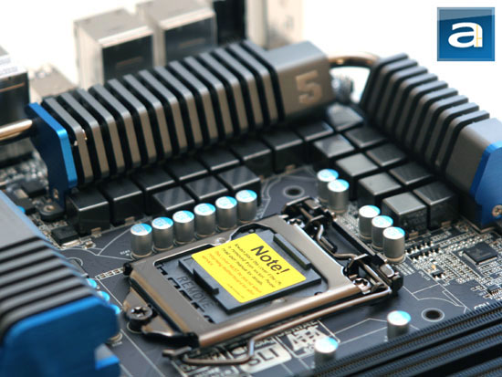 If the photo above looks slightly odd to you compared to the rest of the photos used in this review, good observation. The main profile shot I took ended up looking like a disaster for some reason, so I just stole the stock photo from Gigabyte's website and Photoshopped it into an APH style image. That said, I am glad Gigabyte finally ditched their ugly blue PCB and went for a much classier dark chestnut colored board. Sounds familiar? Yep, kind of like what ASUS uses -- except the color of components are still distinctively Gigabyte. The end results are excellent in my opinion. Although it makes you feel kind of 'blue' looking at a chestnut colored board with gray heatsinks, baby blue highlights everywhere, and black expansion slot connectors, its subtle style is well accentuated, making this the first Gigabyte motherboard that actually appeals to my personal tastes as far as looks are concerned. While aesthetics is not really an issue when it comes to internal components of a computer compared to the way the board is built and how well it performs, surprisingly it can be a deciding factor for some users. Of course, the comments on the look are just a personal opinion. As it has gained immense popularity for the last couple years, the Gigabyte GA-P67A-UD5, like all Gigabyte performance motherboards, features 100% Japanese manufactured 50,000 hour solid state capacitors, ferrite core chokes, and lower RDS(on) MOSFETS for maximum durability and energy efficiency.