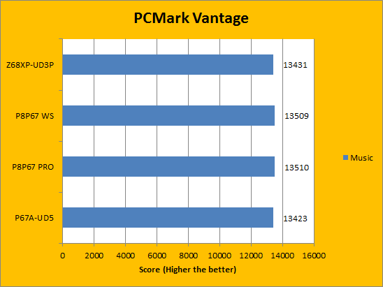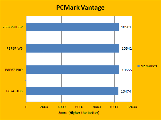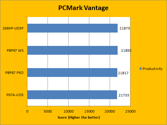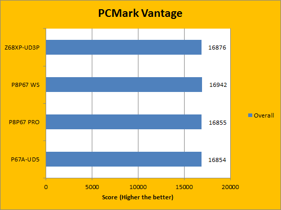 The next two pages put programs from Futuremark into focus. The company produces some of the most popular benchmarks in the world of computing. PCMark Vantage, in particular, provides a very thorough and accurate examination of the entire system, which makes it an overall great benchmarking tool to run. In our results above, we can see that the Gigabyte Z68XP-UD3P produces scores quite similar to the other three motherboards, which is to be expected.