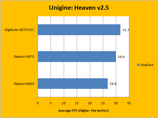 Unigine's Heaven v2.5 shows users what the company's game engine is capable of. Developed in 2009, one of the biggest features of Unigine is its advanced OpenGL 4.0 and DirectX 11 renderer. This is an excellent benchmark, because there are currently fourteen Unigine licenses used for game development at press time. For our tests, we left it at its maximum settings of 8xAA and 16xAF, using tessellation as its only manipulated variable to measure the respective performance of the AMD Barts graphics cards. The average frame rate is shown in our charts above.
