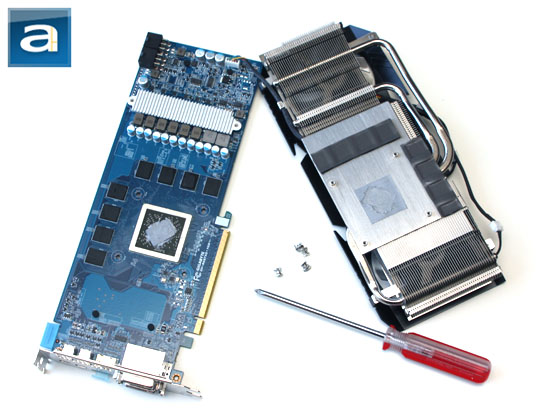 The custom heatsink features thermal pads that go over the memory chips to provide additional cooling. My only complaint is the base of the heatsink has a very rough machine finish, which may limit its performance due to reduced contact with the surface of the graphics processor core. That said, with all these in mind, Gigabyte promises 10-30% lower power switching loss and 10-30% better overclocking capabilities. We will see how it works out in just a moment.